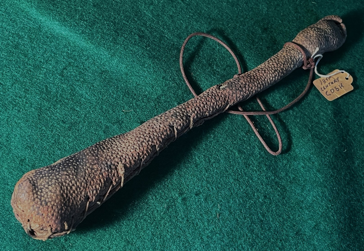 A Press Gang Cosh was an item much feared by men in the 18th & 19th century as it was used by the Royal Navy to coerce men into joining up. It is crudely leather sewed and wrapped measuring 12 ½’ x 2” and weighs 1-pound, 3-ounces.