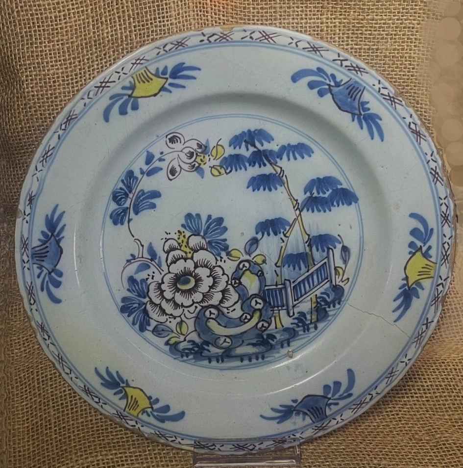 Delftware eating plates were used in the American colonies during the Revolutionary War period, though they were rapidly being replaced by newer, more durable ceramics. Throughout the 17th and 18th centuries, delftware (tin-glazed earthenware) was the most common type of ceramic export to the American colonies.