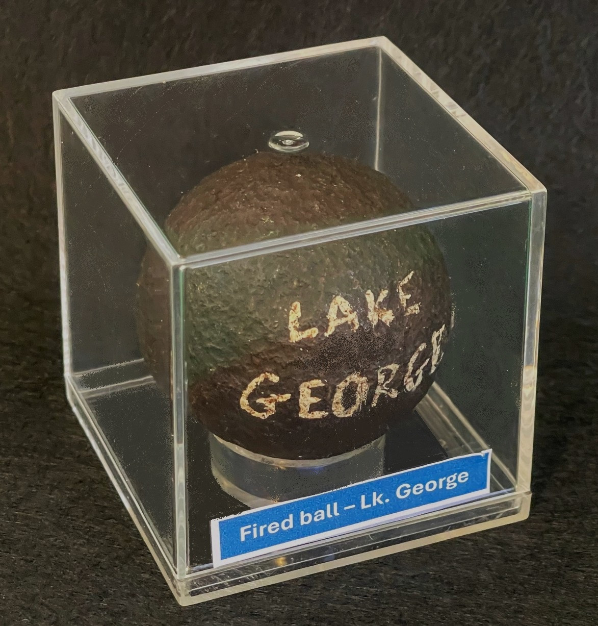This is a very nice early piece coming out of an old Revolutionary War and French & Indian War collection. The small size cannonball has a 2” diameter and weighs 1-pound, 6-ounces. These balls were fried from gunboats with swivel cannons (see pictures). This one was recovered in the early 20th century at Lake George, NY