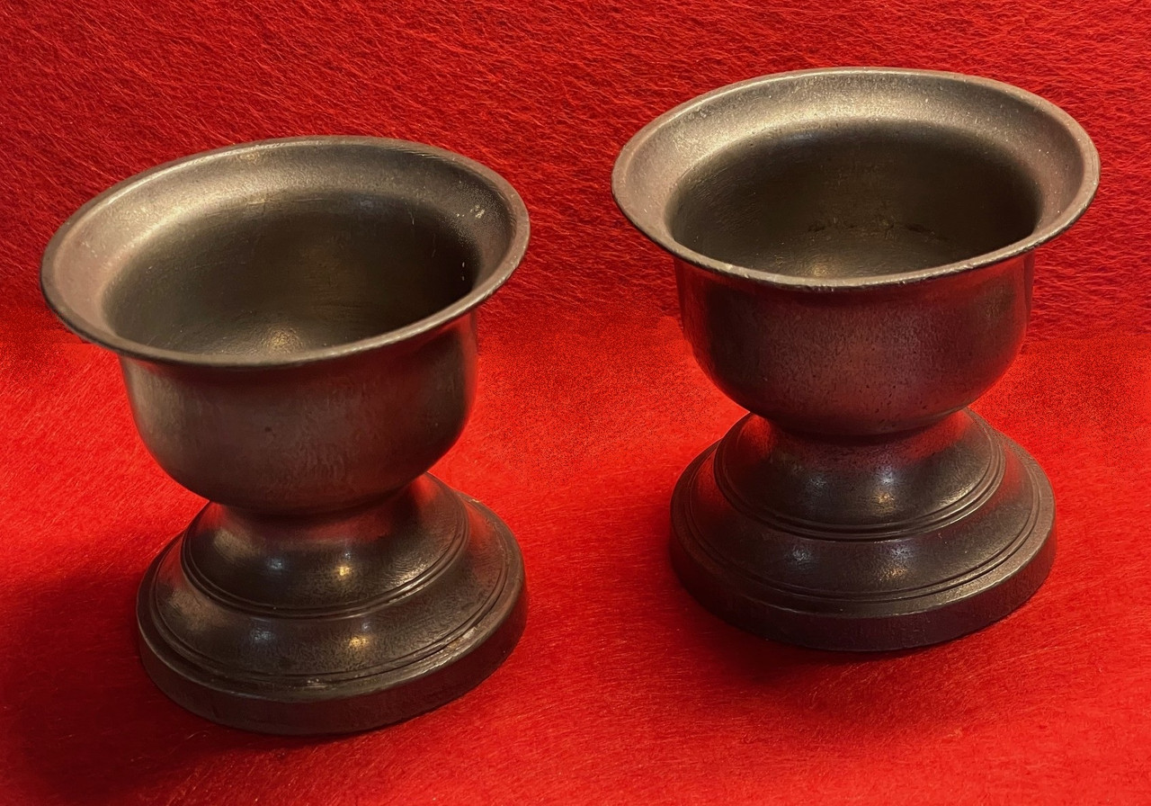 Finding a matched pair from this era is a rare opportunity for collectors, as many were separated or damaged over the centuries due to pewter's relatively soft nature and its tendency to develop "pewter disease" (corrosion) when exposed to salt.