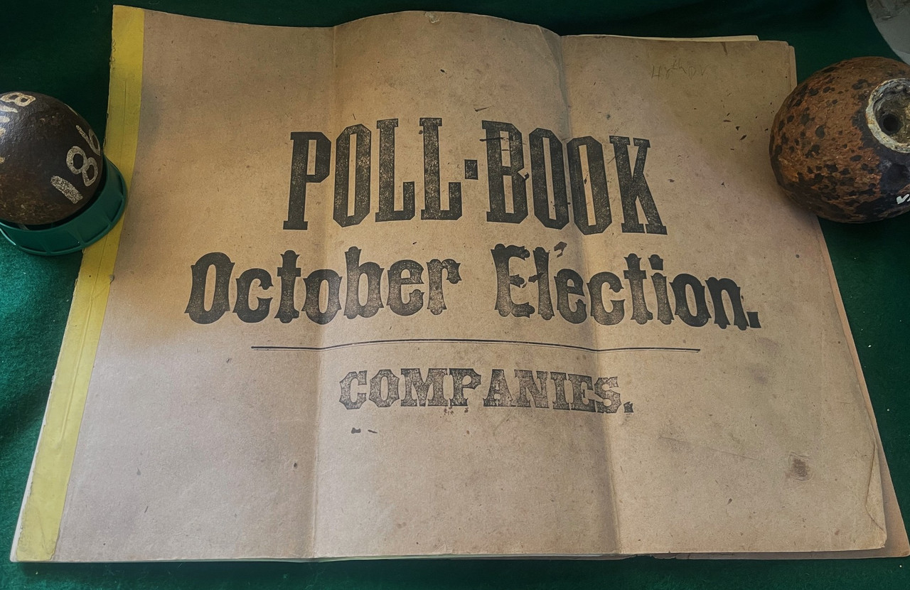 This is a rare item being offered, it is a Poll Book for elections of Company “D”, 48th Pennsylvania Veteran Volunteers, measuring 16 ½” x 11 ½”. The 48th was recruited in Schuylkill County, Pennsylvania and organized at Camp Curtin in Harrisburg, Pennsylvania, during August and September 1861. A large number of men in the regiment had been miners prior to the war.