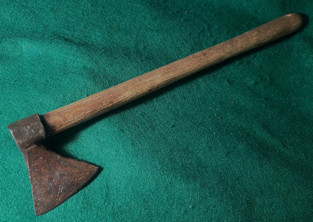 You will look a long time to find a better-balanced size axe with the original period handle. With many of these axes, the iron head has some movement, this one is very tight. These axes were used to trade with the Indians in the late 17th century through the early 18th century.